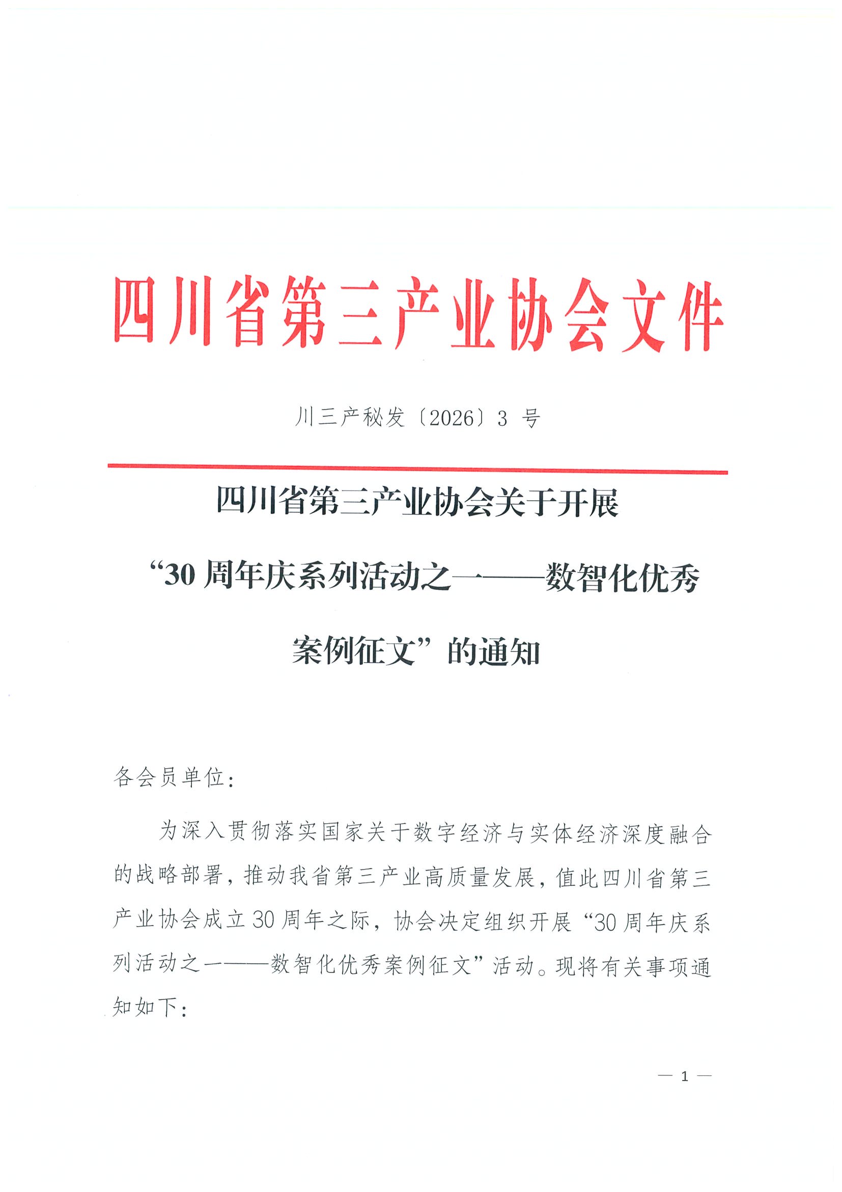 川三产秘发【2026】3号-四川省第三产业协会关于开展“30周年庆系列活动之一——数智化优秀案例征文”的通知