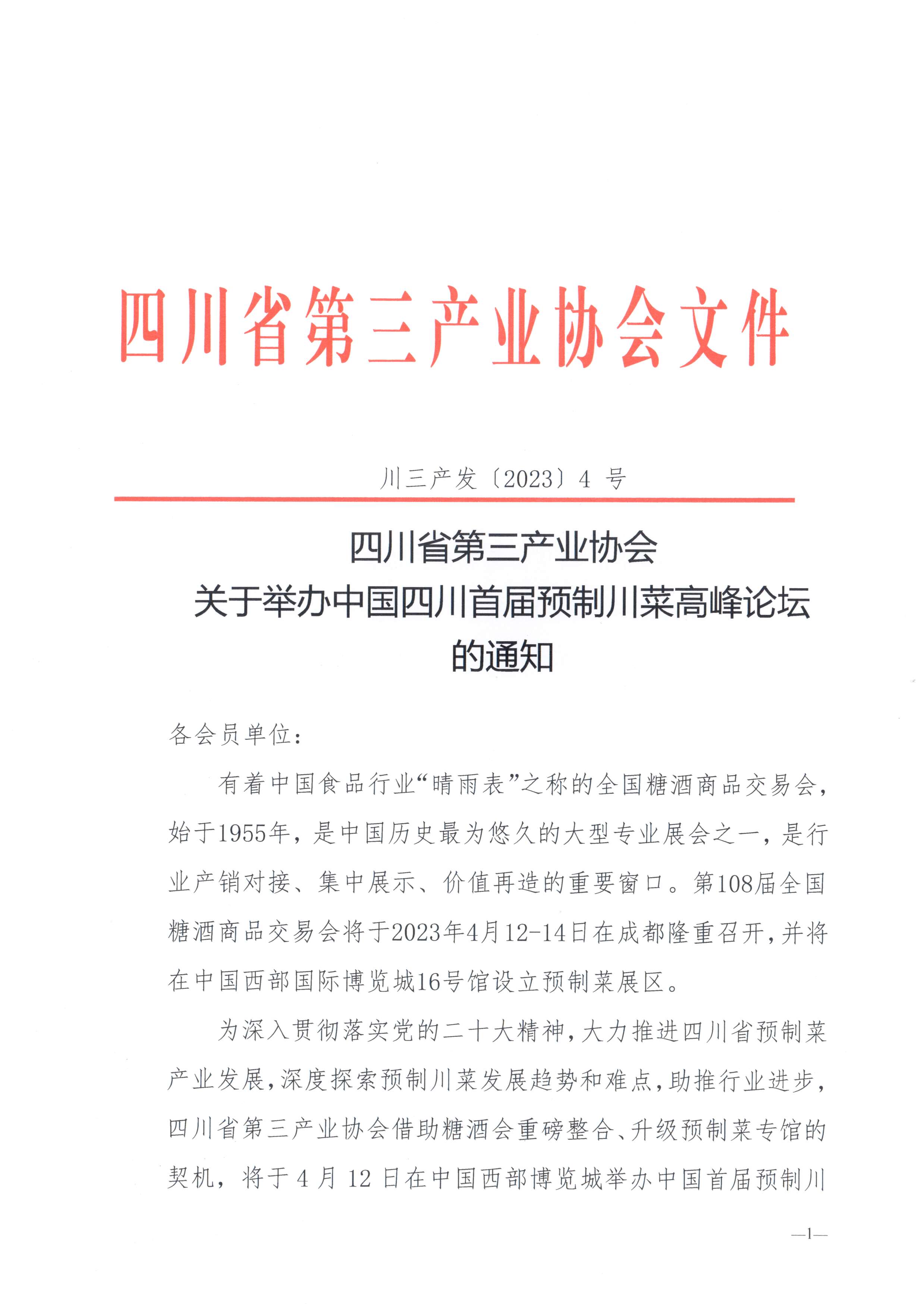 川三产发〔2022〕4号 四川省第三产业协会关于举办中国四川首届预制川菜高峰论坛的通知