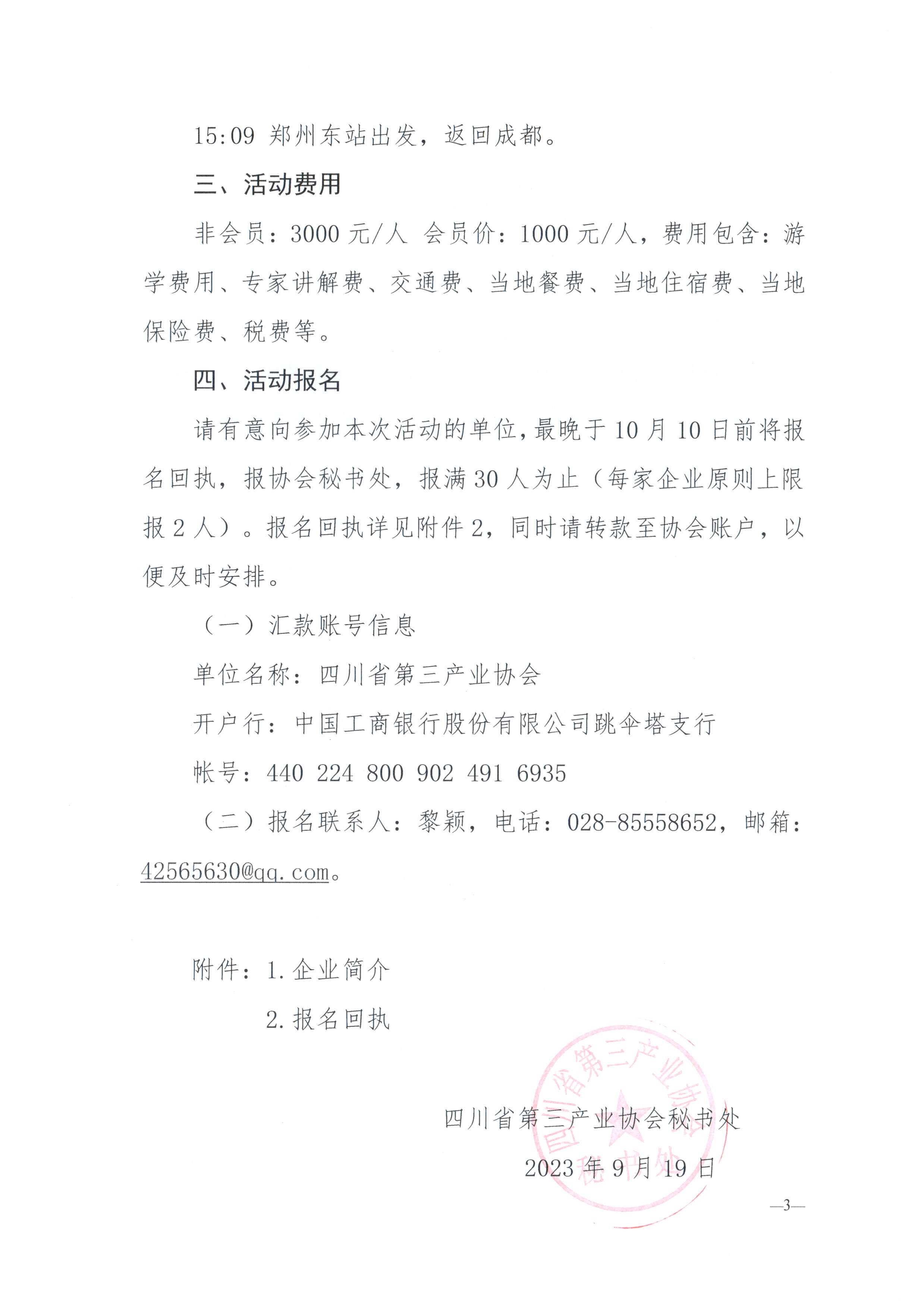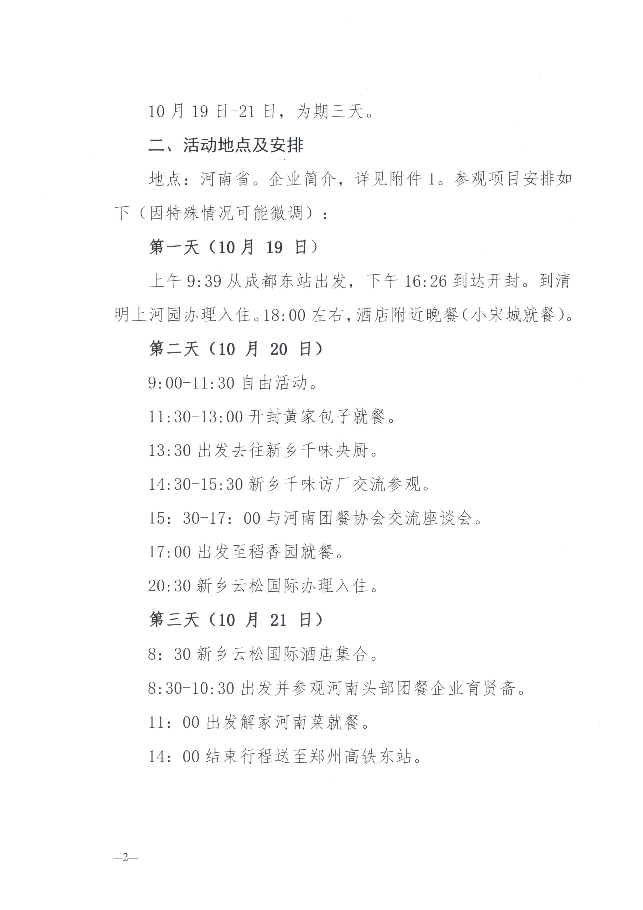 川三产秘发【2023】19号 关于组织“赴河南餐饮游学交流之旅”活动的通知
