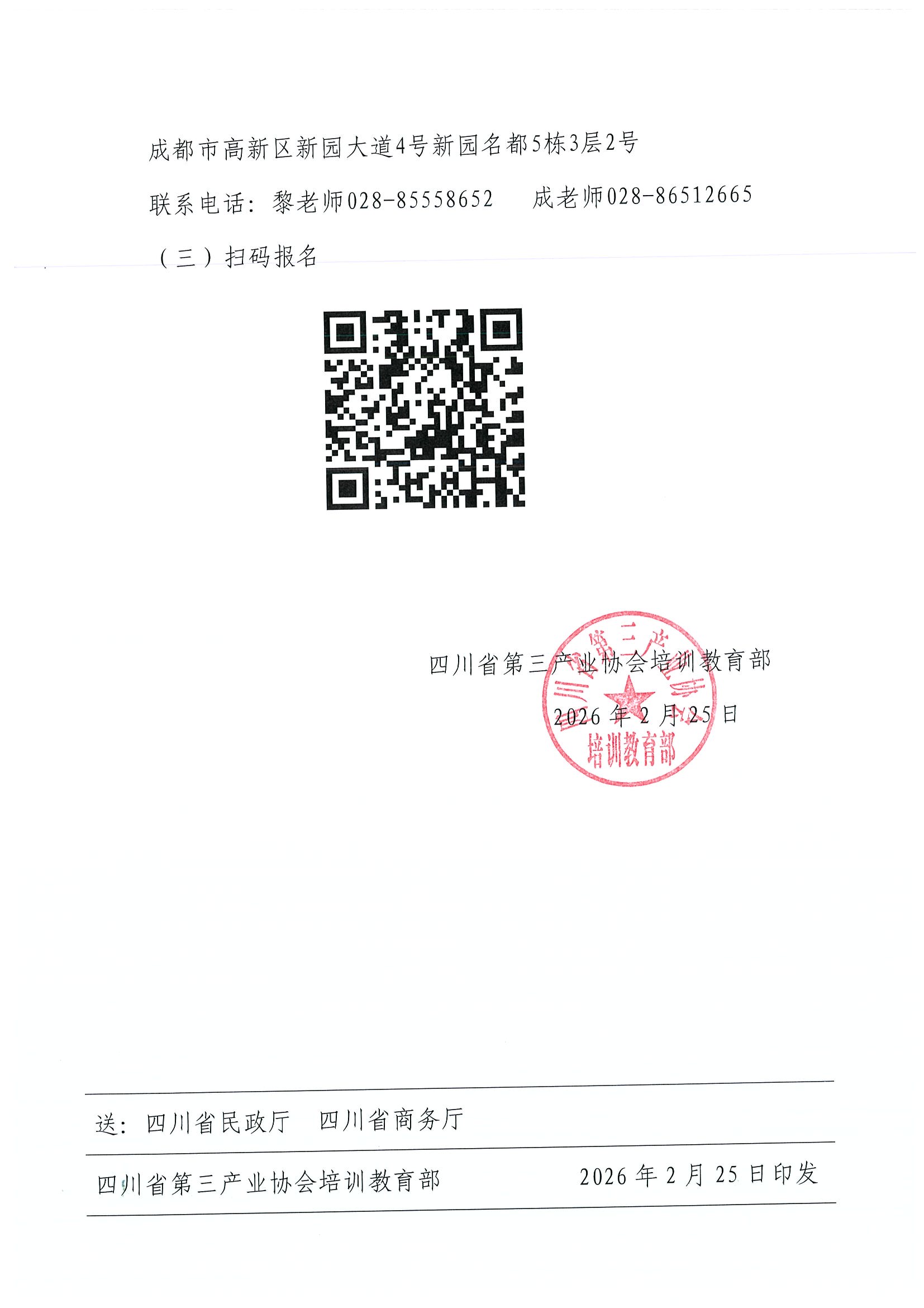 川三产训【2026】1号四川省第三产业协会关于开展 2026 年度物业管理师职业技能培训工作的通知