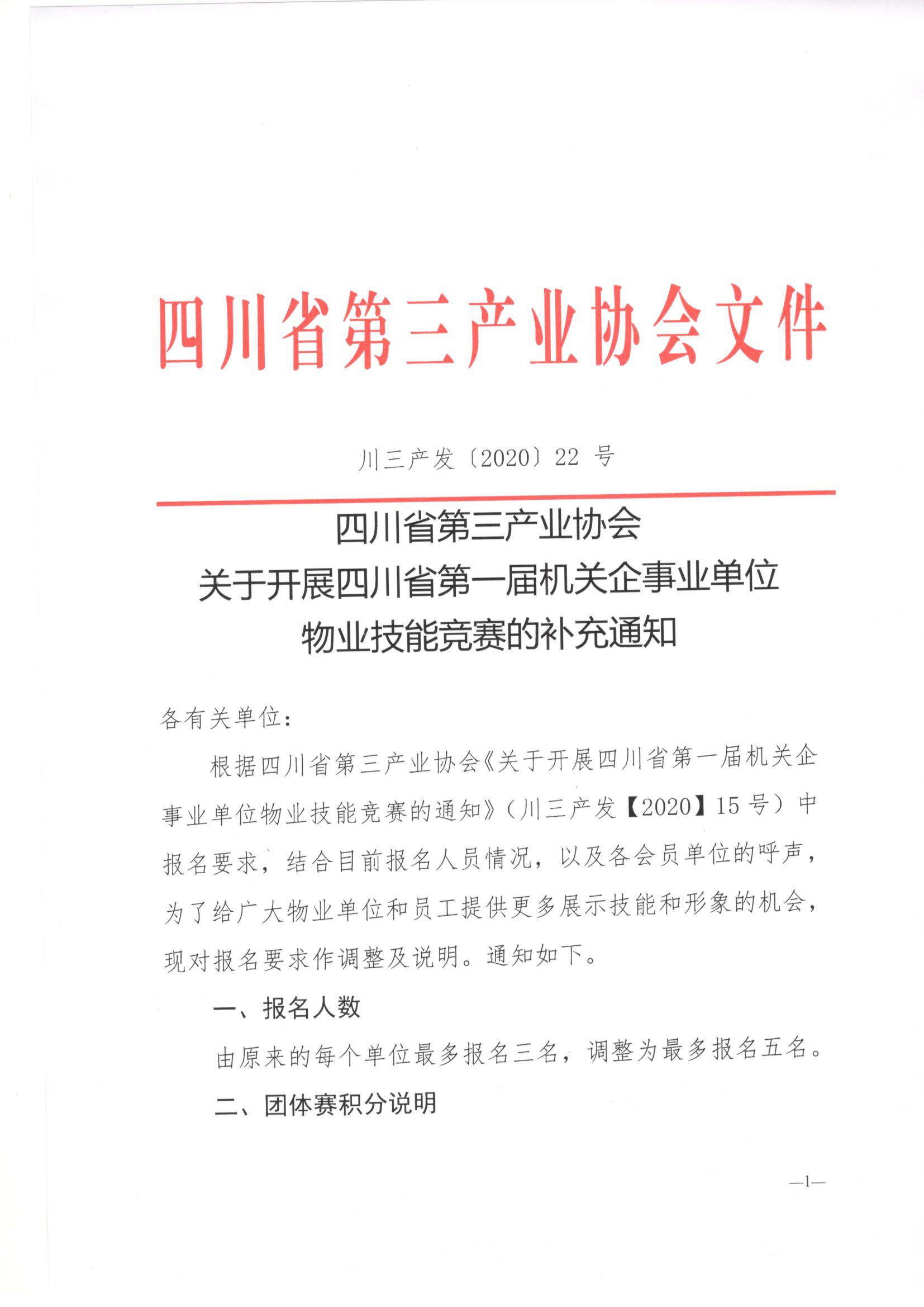 川三产发【2020】22号关于开展四川省第一届机关企事业单位物业行业职工技能竞赛的补充通知