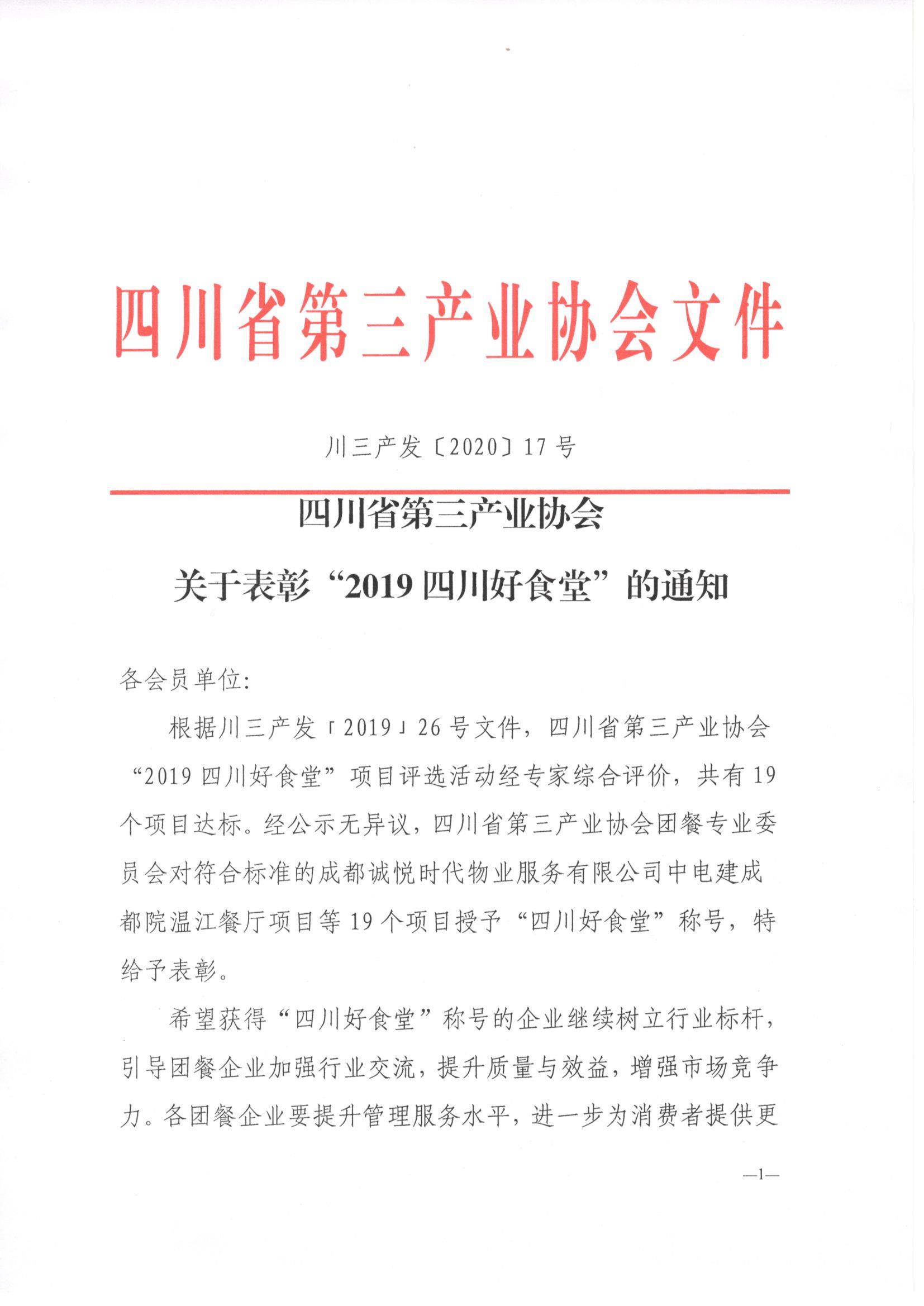 川三产发【2020】17号关于表彰“2019四川好食堂”的通知