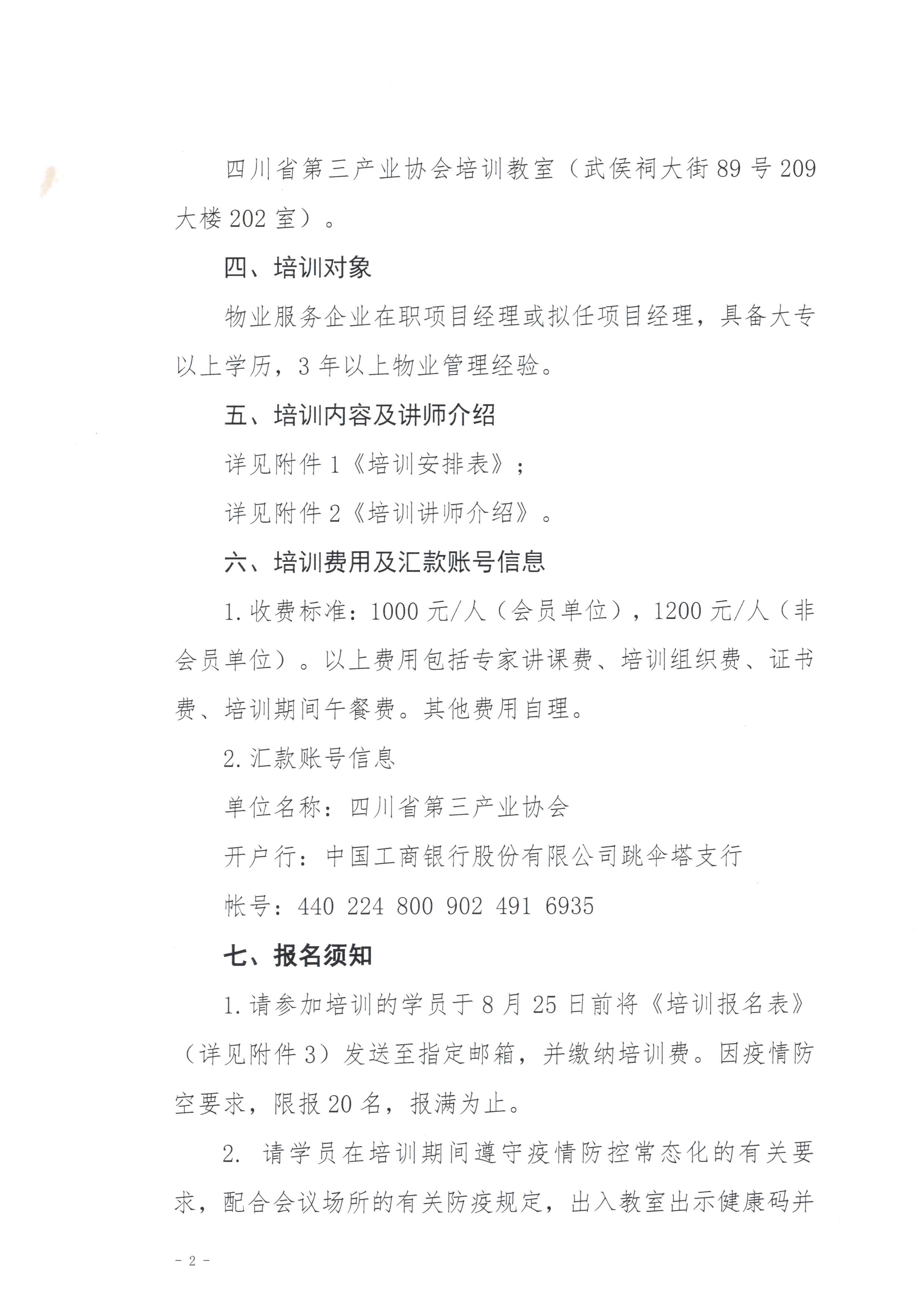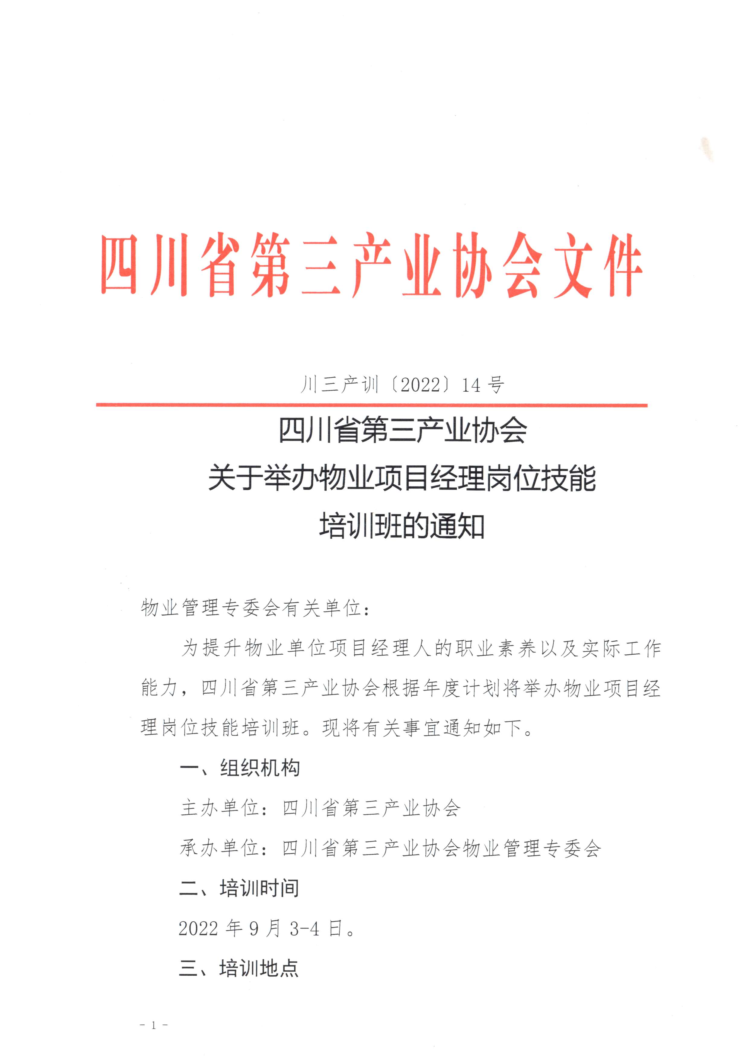 川三产训【2022】14号 四川省第三产业协会关于举办物业项目经理岗位技能培训班的通知