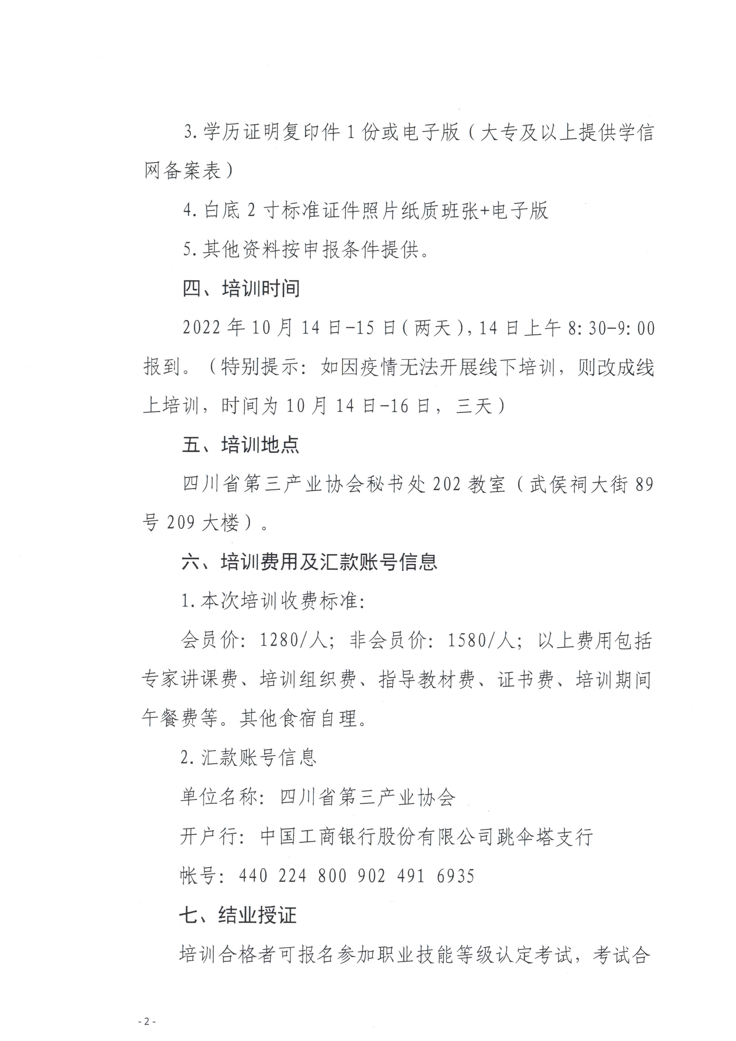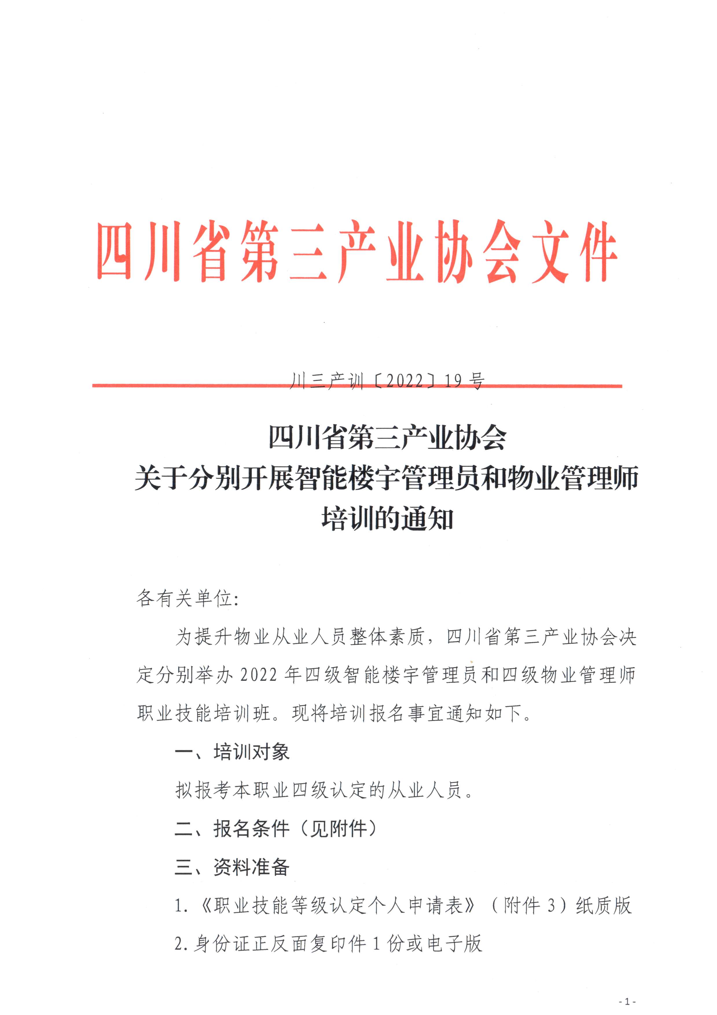 川三产训【2022】19号 关于分别开展智能楼宇管理员和物业管理师培训的通知